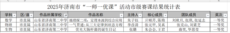 近日,2025年济南市“一师一优课”活动市级赛课结果揭晓,济南二中数学、物理、生物三个学科团队凭借出色的课程设计与教学实践,均荣获一等奖,充分展现了学校在课程改革与学科育人方面的深厚积淀与创新能力。
