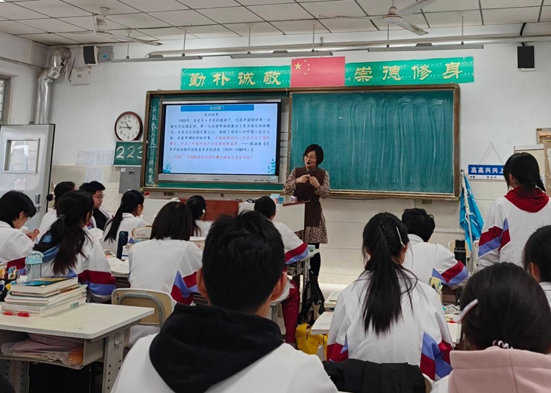 校庆期间,听了王秀老师以《改革开放初期(1978—1987年)——中国特色社会主义的开创》为题的复习课,这节课通过两位历史人物:邓小平和皮尔·卡丹和环环相扣的新情境,引导学生层层设问,再让他们独立探究和解答,以这样的授课方式她把课堂真正还给了学生,把学生置于主体地位,使学科素养得以落地。整节课,学生丝毫没有走神,他们表面的平静没能掩饰他们内心的波动,听课的我们也是如此。