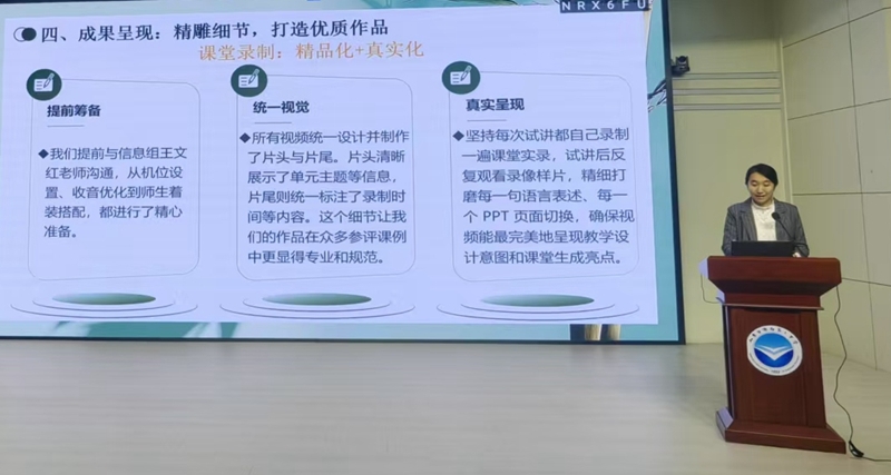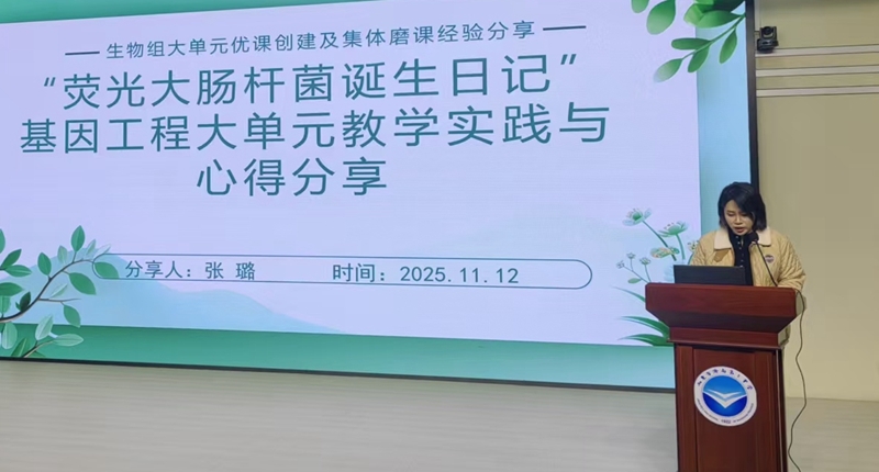 生物组张璐老师则以“内容重构、工程思维”为主题,分享了团队的创作思路与实践感悟。张老师提到,优课创作不仅是课程产品的产出,更是团队成员专业素养的集体提升,通过跨年级、跨学段的研讨交流,大家碰撞出思维火花,也形成了 “分工协作、互助共进” 的团队氛围。