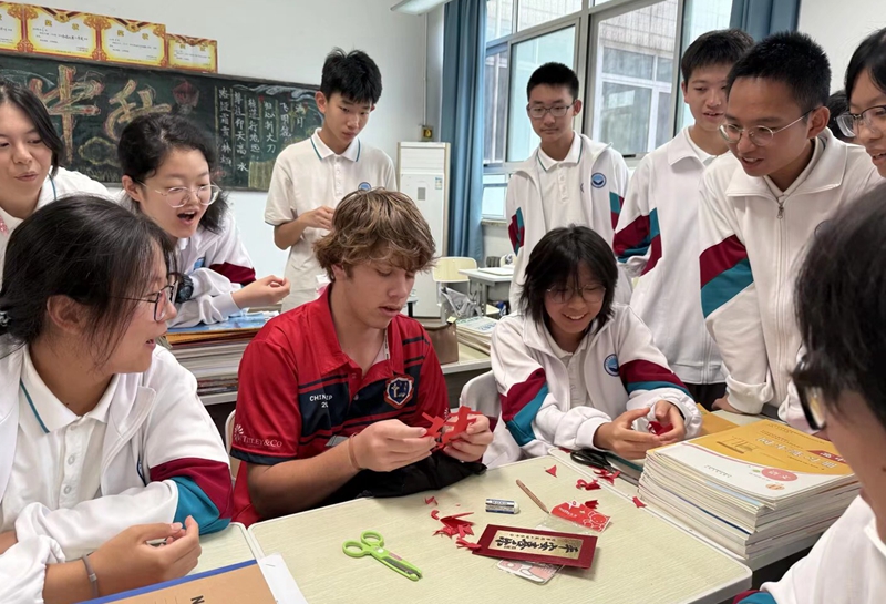 美育是心灵的滋养剂。在校园合唱比赛中,我们的合唱《国家》荣获一等奖。我们迎来了澳大利亚代表团师生。代表团同学走进我班深度体验臻美课堂,同学们准备了英语演讲,为客人介绍了济南的中华优秀传统文化和名胜古迹,并和外国友人一起体验了剪窗花等活动,一直到下课后,代表团同学依然在教室与我班师生进行热烈交流。