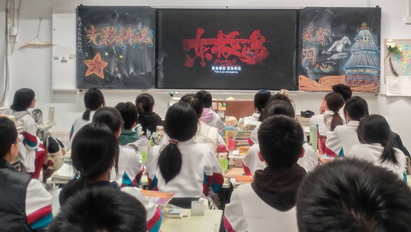本次活动旨在通过影视作品的感染力,激发学生的爱国情怀与审美体验,引导他们在观看、思考与书写中实现精神成长。活动前,各班积极筹备,不仅对教室多媒体设备进行了全面检查,还围绕主题精心布置黑板报,营造出浓厚的爱国主义教育氛围。