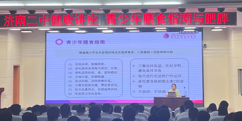 2025年“国家健康体重管理年”启动以来,济南二中积极响应政策号召,将青少年体重健康纳入学校教育核心议程。为深化健康素养教育,破解青少年肥胖率攀升难题,5月12日,学校联合济南市妇幼保健院儿童保健科开展“青少年膳食与肥胖健康管理”专题讲座,特邀儿童保健科主治医师李慧为师生带来权威健康指导。