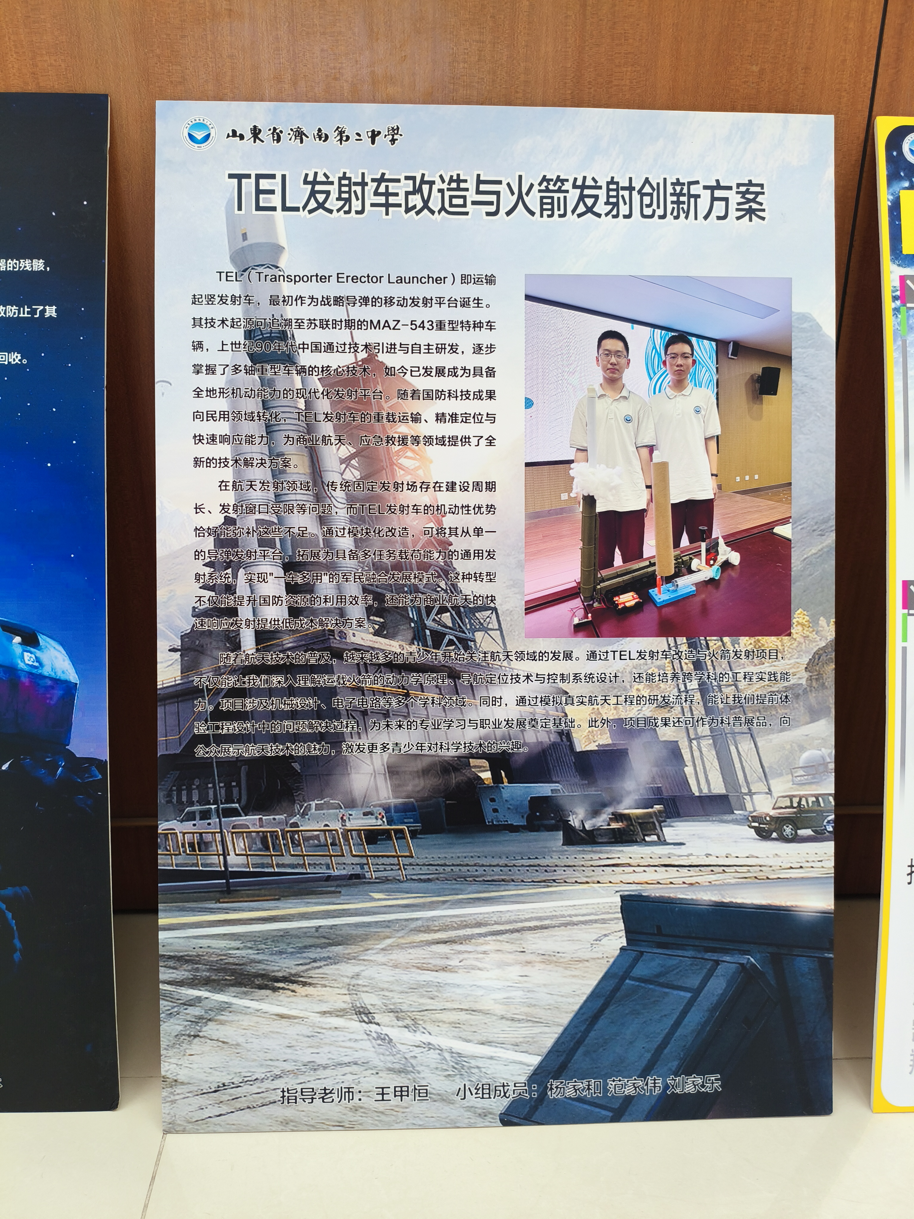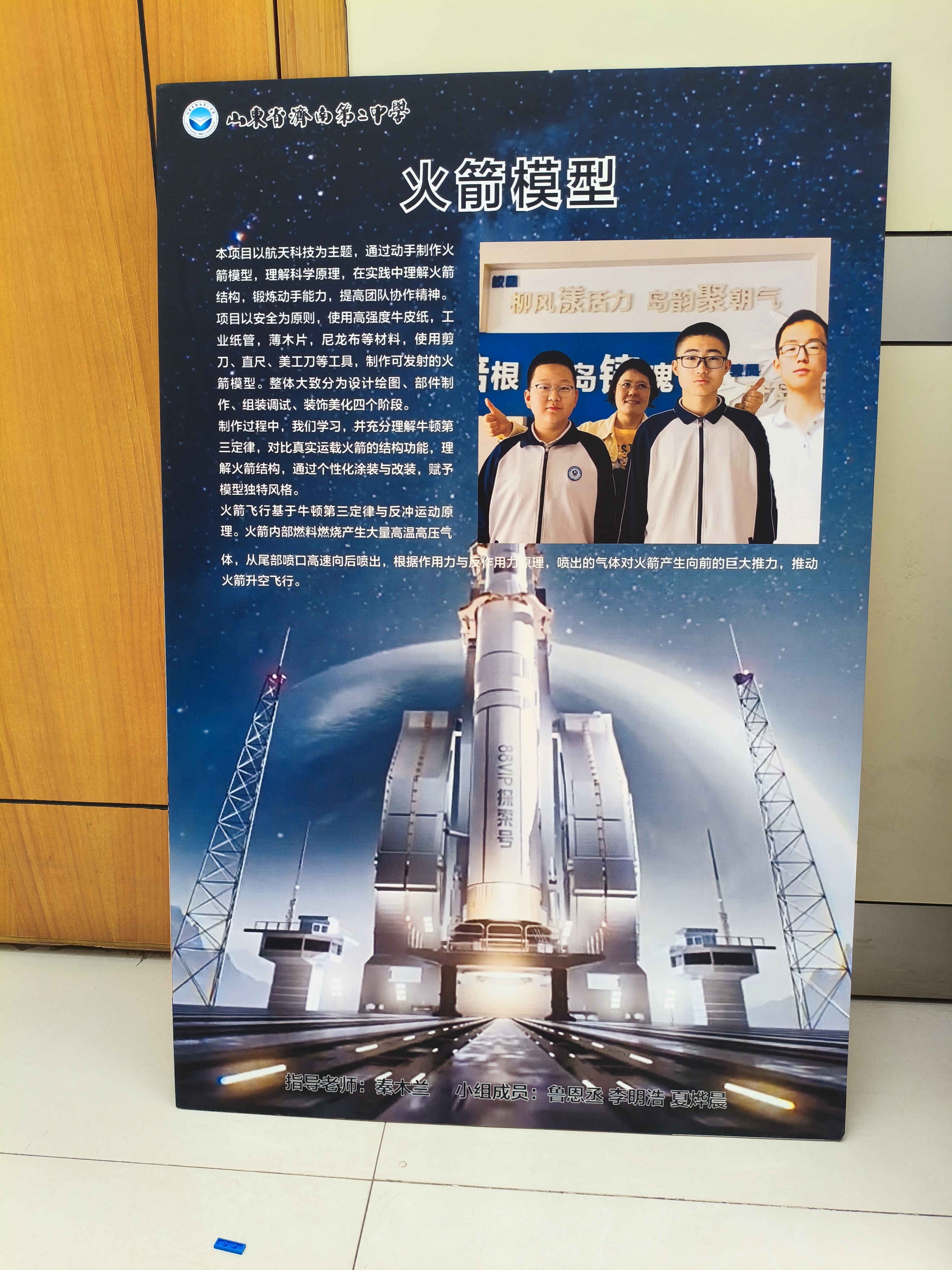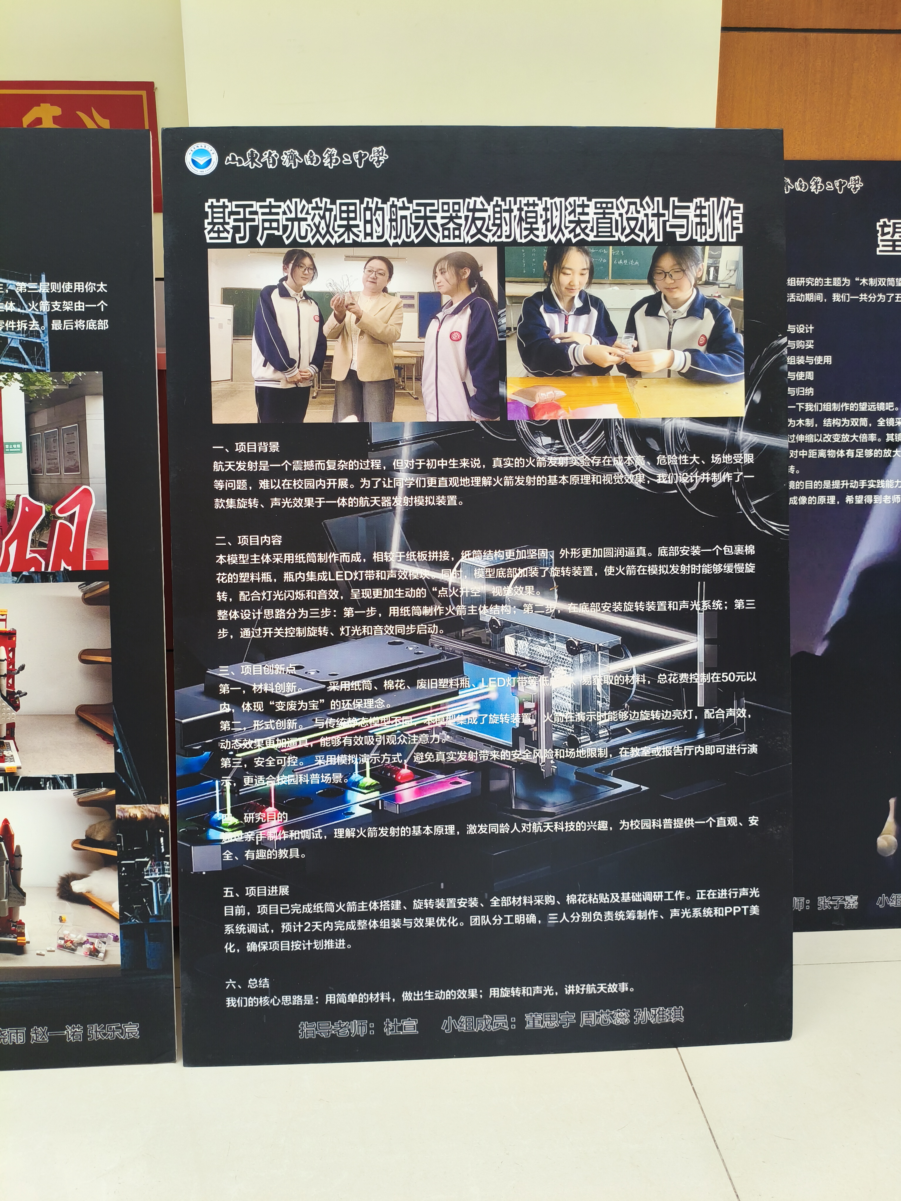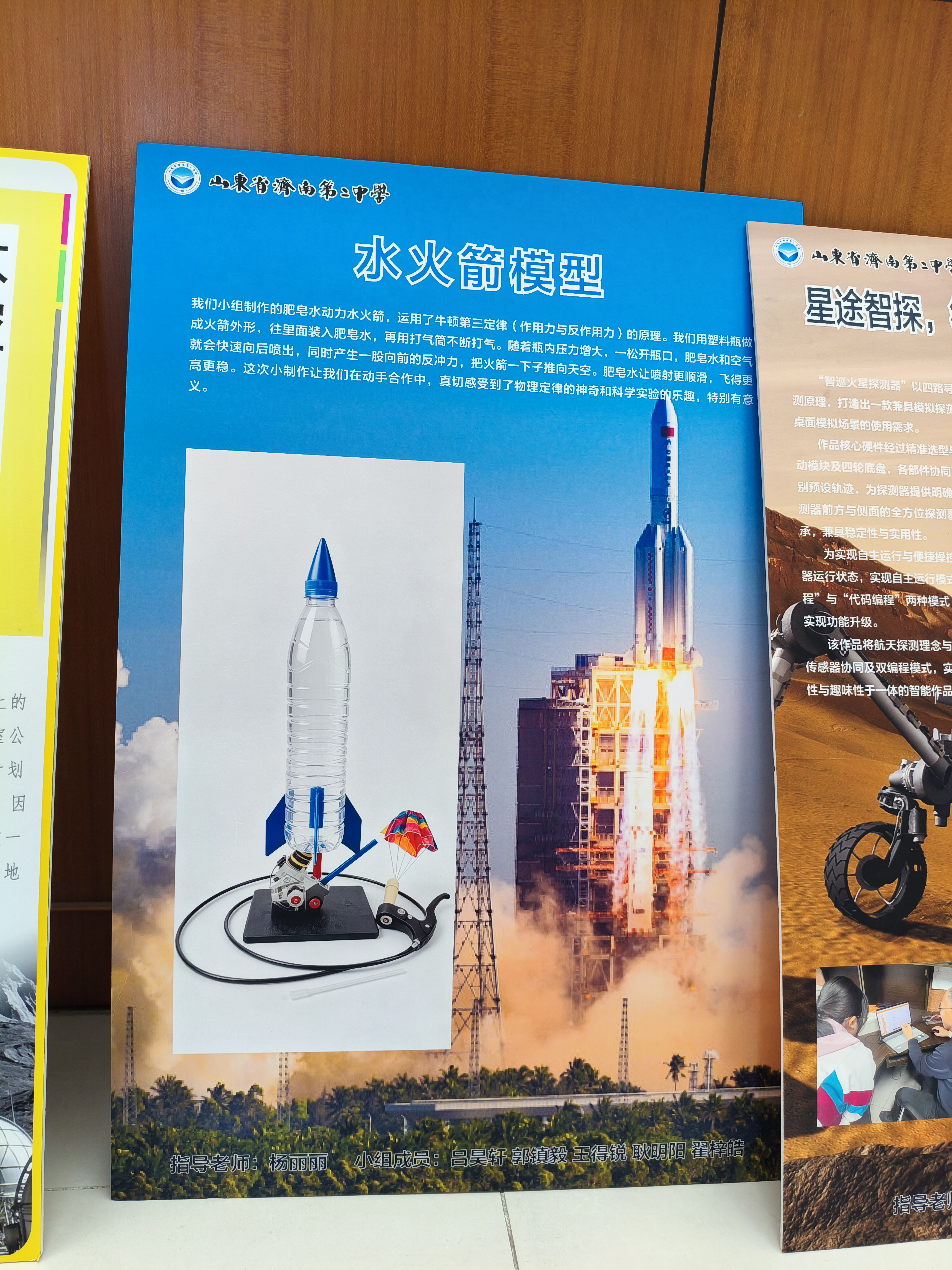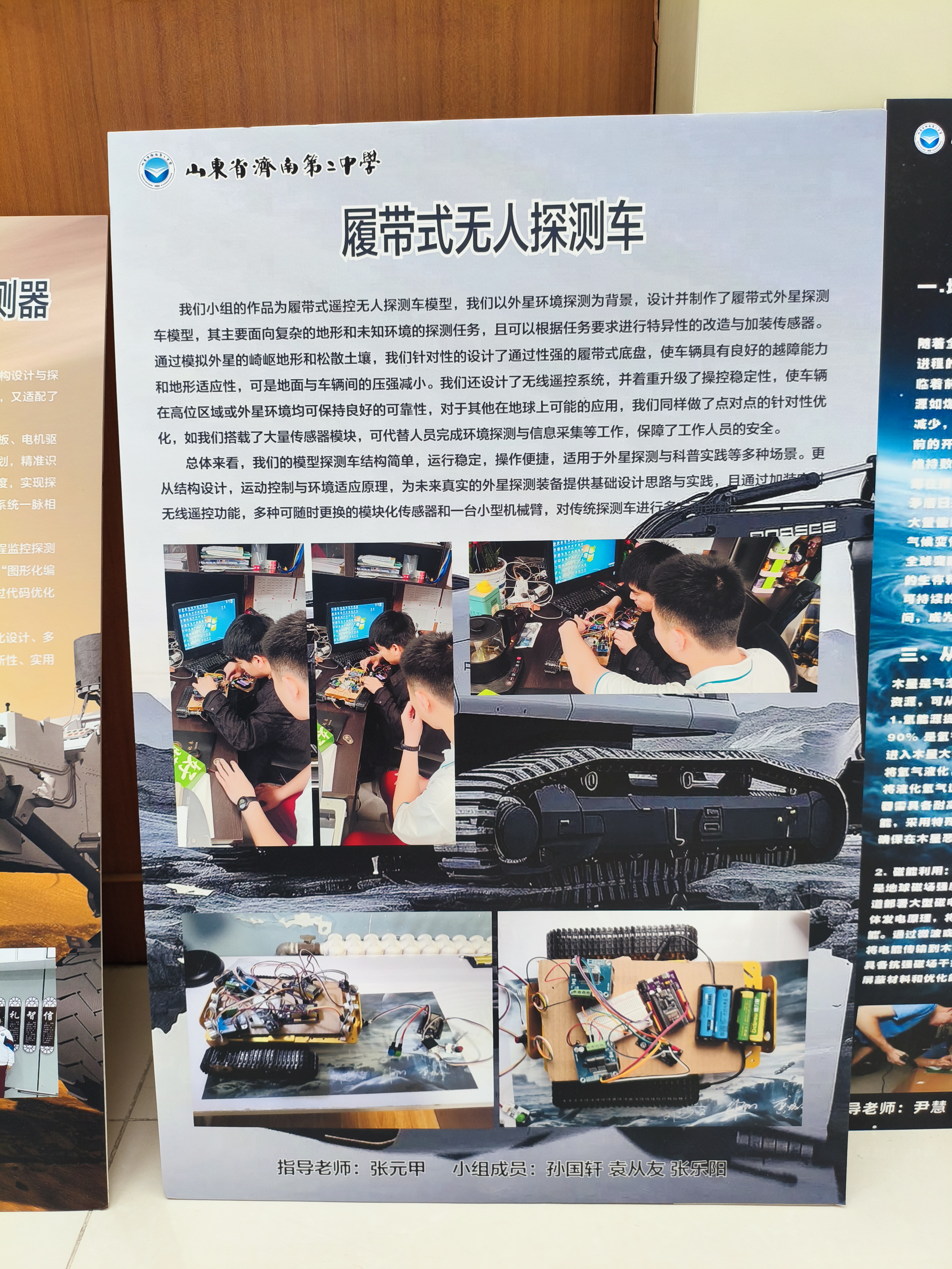 近日,济南二中举办了一场别开生面的航天科技教育成果展。此次活动旨在弘扬航天精神,普及航天知识,展示学校在航天科技创新教育领域的丰硕成果,激发广大青年学子投身航天事业的热情与梦想。本次展览汇集了济南二中各科研小组的智慧结晶,涵盖火箭设计、星际探测、无人车研发、太空生态构建及轨道清理等多个前沿方向,充分展现了二中学子扎实的科学素养、严谨的工程思维和卓越的创新实践能力。