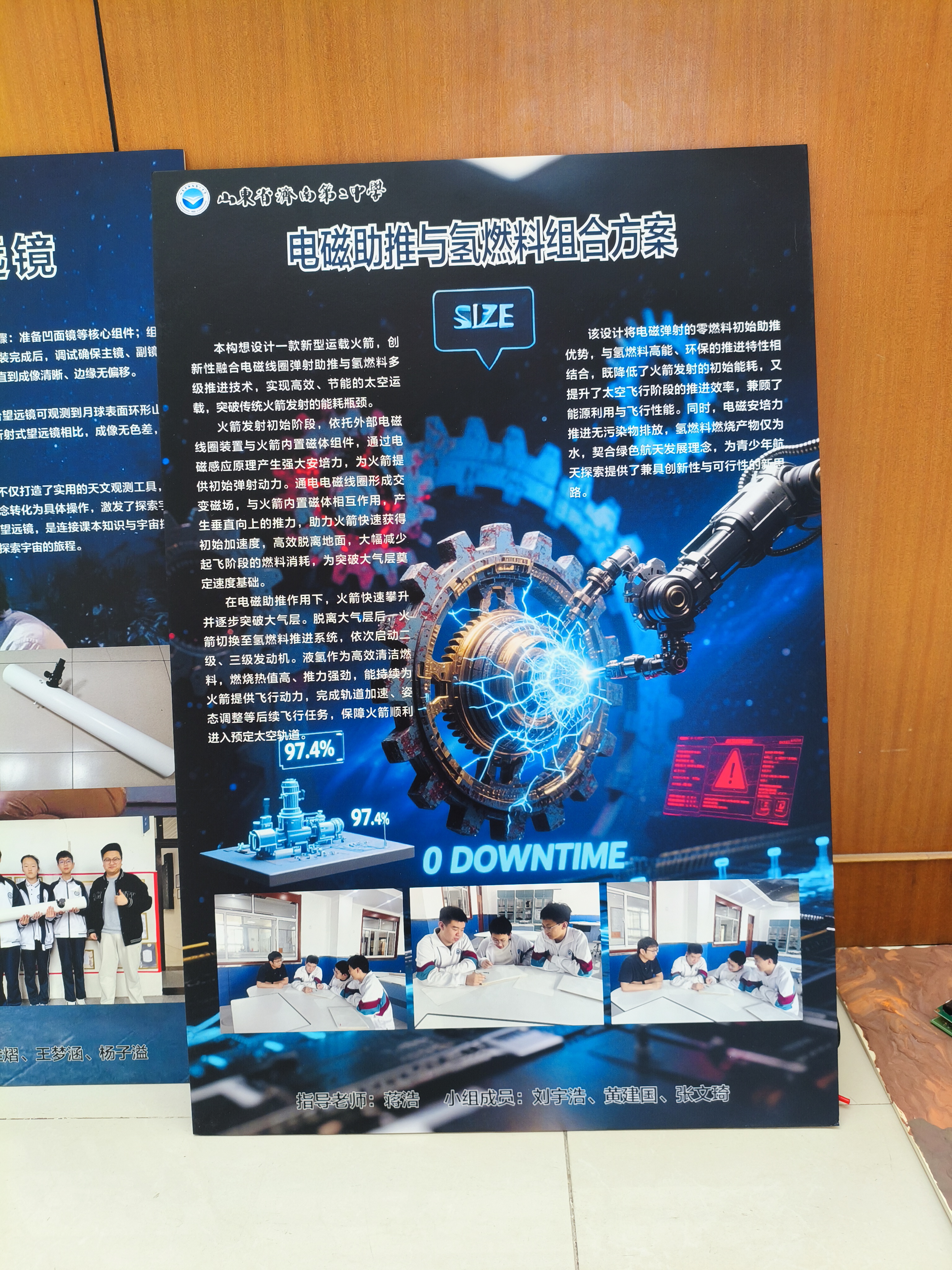 《电磁助推与氢燃料组合方案》项目探索新型推进系统,将电磁加速与氢燃料电池结合,旨在提升火箭初始推力与燃料效率。团队通过仿真模拟与实验验证,证明该组合方案可显著提升发射效率、降低能耗,为未来绿色航天提供了可行性路径。