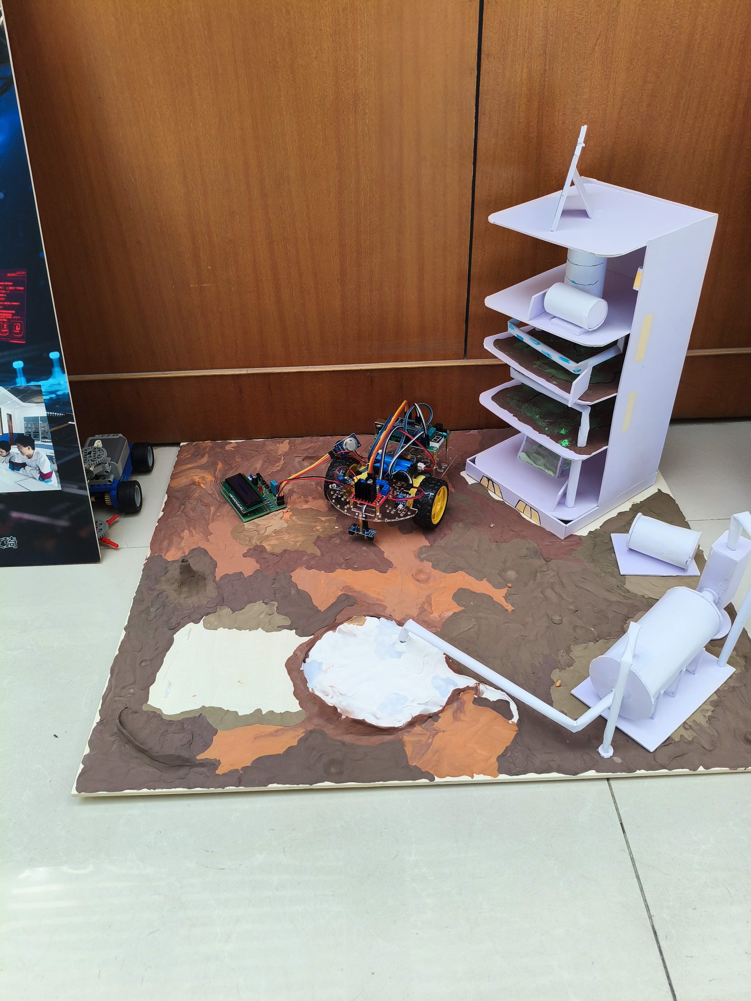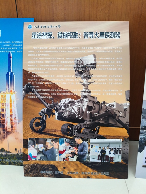 《星途智探,微缩融:智寻火星探测器》项目以中国“祝融号”火星车为原型,通过3D建模与实物复刻,还原其机械臂操作、自主导航与环境感知功能。团队还开发了简易远程操控平台,实现“地面-火星车”双向通信模拟,让学生在操作中深入理解火星探测的复杂性与技术挑战。