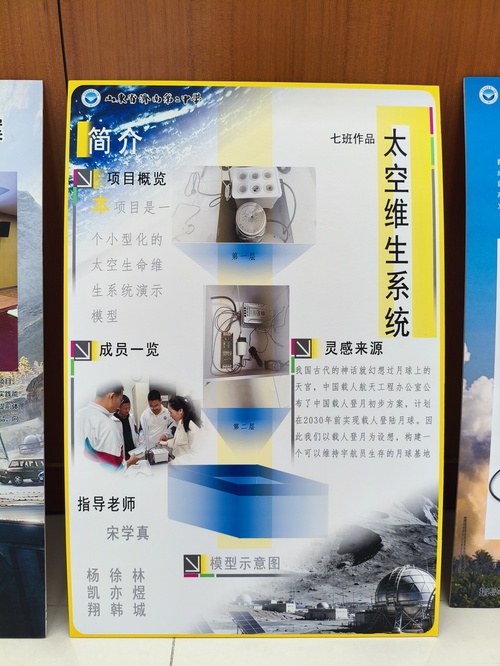 《太空维生系统》项目聚焦人类长期驻留太空的生存保障。团队设计了一套包含水循环、空气净化、食物合成、氧气再生等模块的微型生态系统模型,模拟月球基地内闭环生态运行。