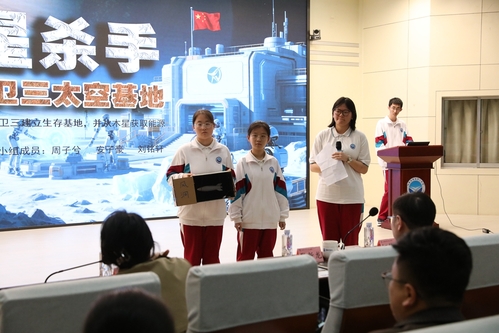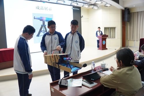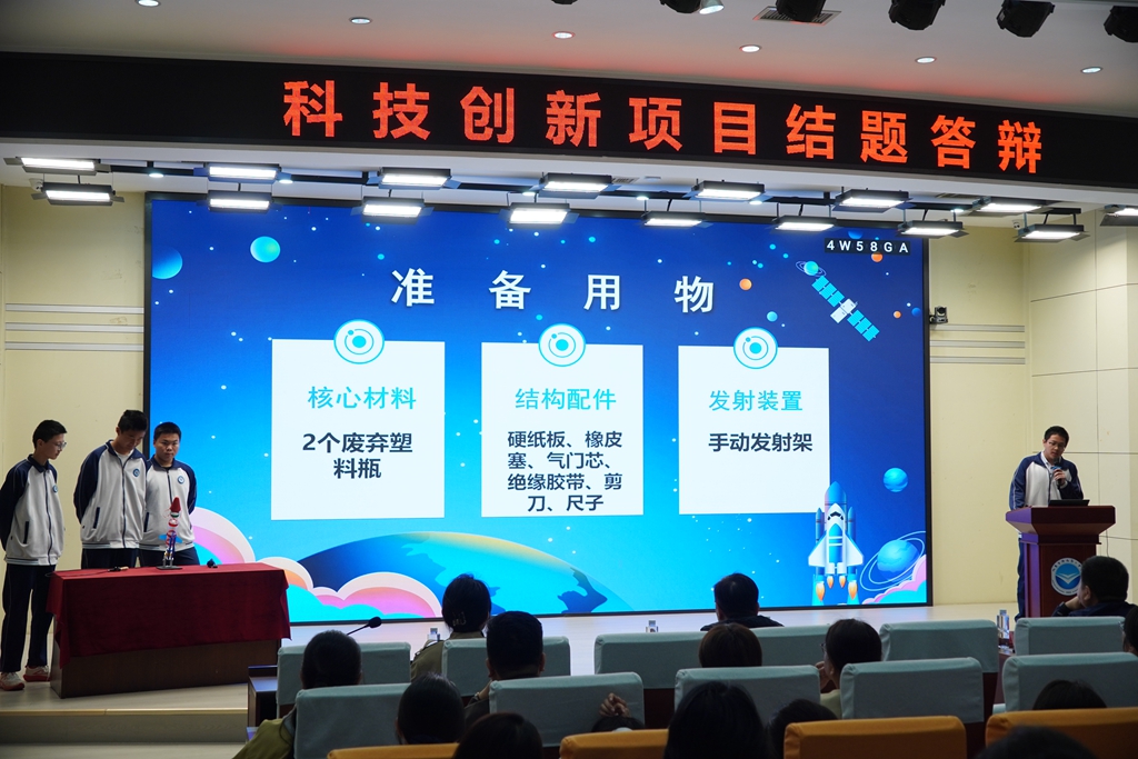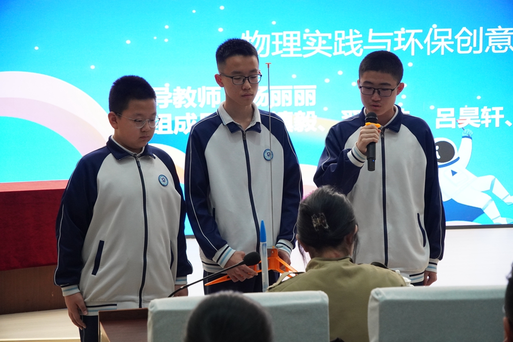 结题答辩环节,14支团队以"航天+"为内核,呈现了一场跨越天地的科学对话。云锦中学科创团队以“追光者”的执着,将天文望远镜的镜筒化作探索宇宙的“天眼”;五柳岛中学学子用废旧材料打造的水火箭,在模拟发射中划出完美的抛物线;明湖中学的航天器发射模拟装置,通过声光电技术再现了星辰大海的壮美征程。