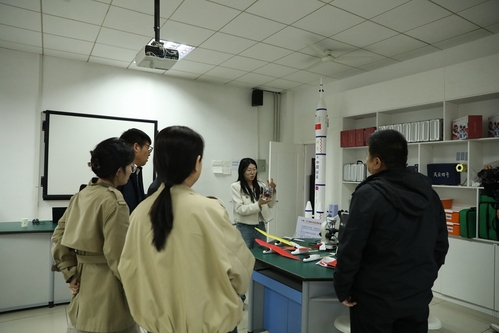 开幕式前,与会专家实地参观学校航天教室、物理实验室与航天成果展厅。从学生自制的牛顿反射式望远镜到火星基地模型,从水火箭模型到太空维生系统模拟装置,每一件作品都闪耀着二中学子“敢想敢为、善作善成”的科创精神,也成为学校践行“航天特色+科学教育”融合发展的生动注脚。