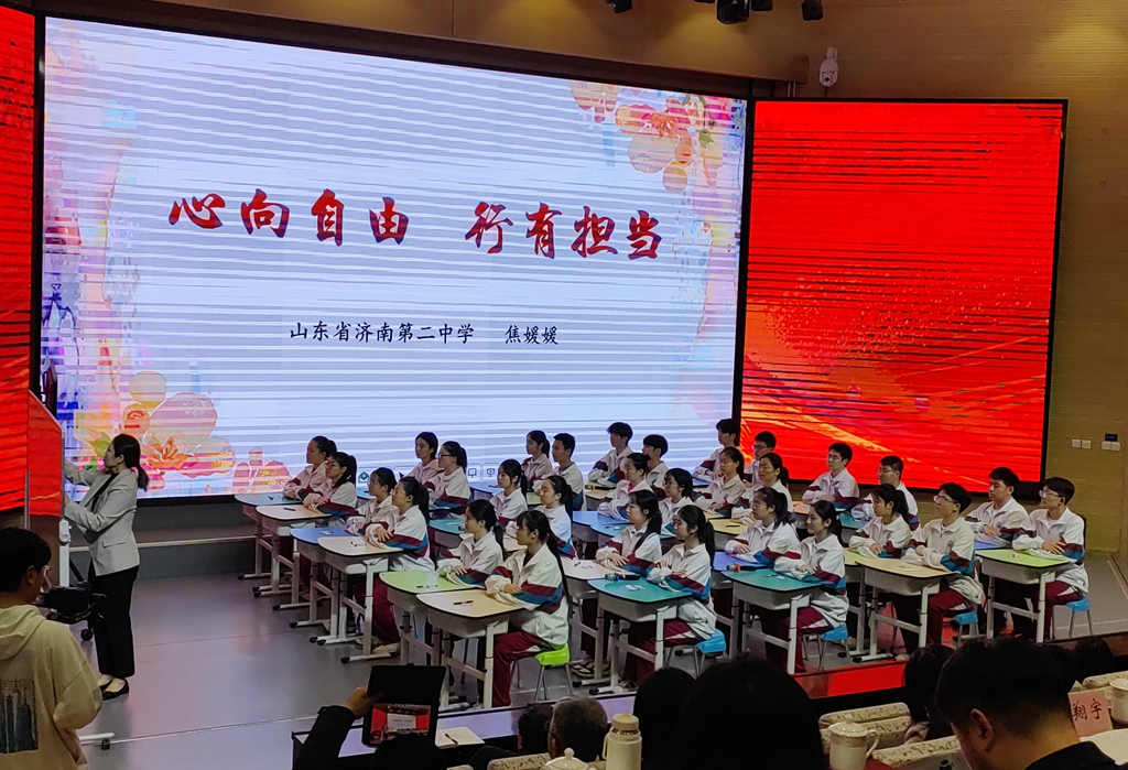为深入推进社会主义核心价值观进校园、进课堂、进头脑,3月25日下午,济南市大中小学共同上好“社会主义核心价值观——自由”主题思政大课活动在天桥区云世界小学报告厅顺利举行。济南二中政治组教师焦媛媛代表高中组,凭借精心打磨的思政课完成精彩展示,充分展现了济南二中思政教育的扎实功底与二中学子的良好风貌,获得与会领导、专家与同仁的高度好评。