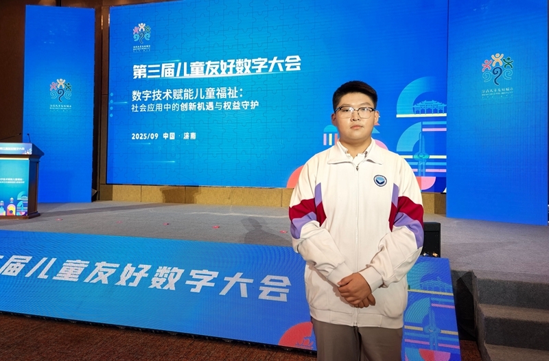 济南二中高三学生李一龙作为全市挑选的高中生代表参会,在大会主论坛“友好实践”环节,与政府代表、专家学者、企业嘉宾同台,分享自身在数字技术领域的探索成果与深度思考,充分展现济南二中学子卓越的数字素养与科创能力,为学校科创教育成果再添亮丽一笔,其亮相亦是大会关注儿童主体、赋能儿童成长的生动体现。