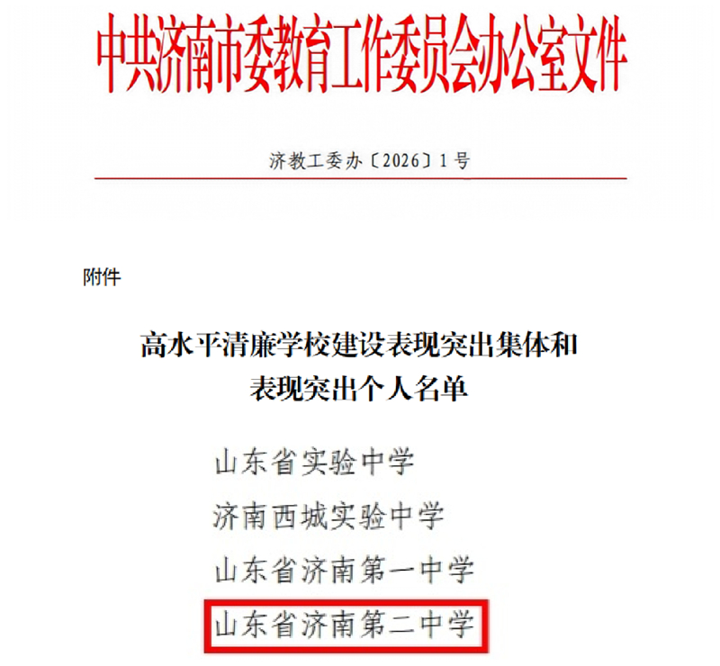 济南二中获评全市高水平清廉学校建设表现突出集体