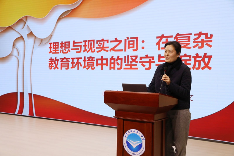 随后,山东师范大学心理学教授、山东行知青少年发展研究院名誉院长孔屏带来《我是一切的根源——教师幸福力的自我构建》专题讲座。她指出,幸福力是可学习、可培养的综合素养。孔屏围绕教师自我成长与职业发展展开分享,引导教师觉察自身心理特质与行为模式,平衡家庭与事业关系;强调尊重学生独特性、看透问题本质,努力成为学生生命中的贵人;建议教师为家长提供实质帮助,通过深耕专业、坚持学习成长为教育达人,以积极视角看待他人与社会。整场讲座案例鲜活、兼具理论深度与实践意义,助力教师构建积极职业心态,实现育人与育己的和谐统一。