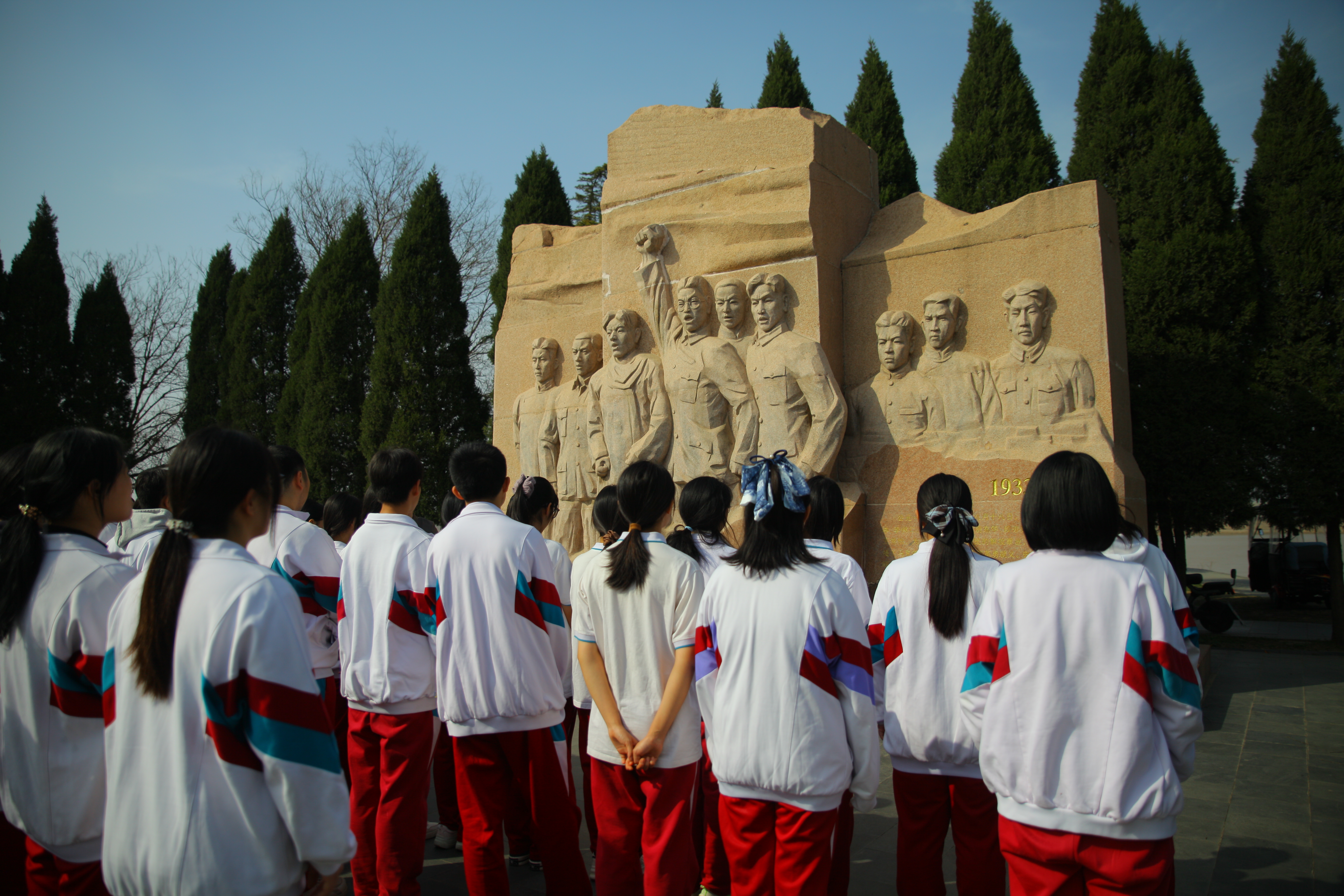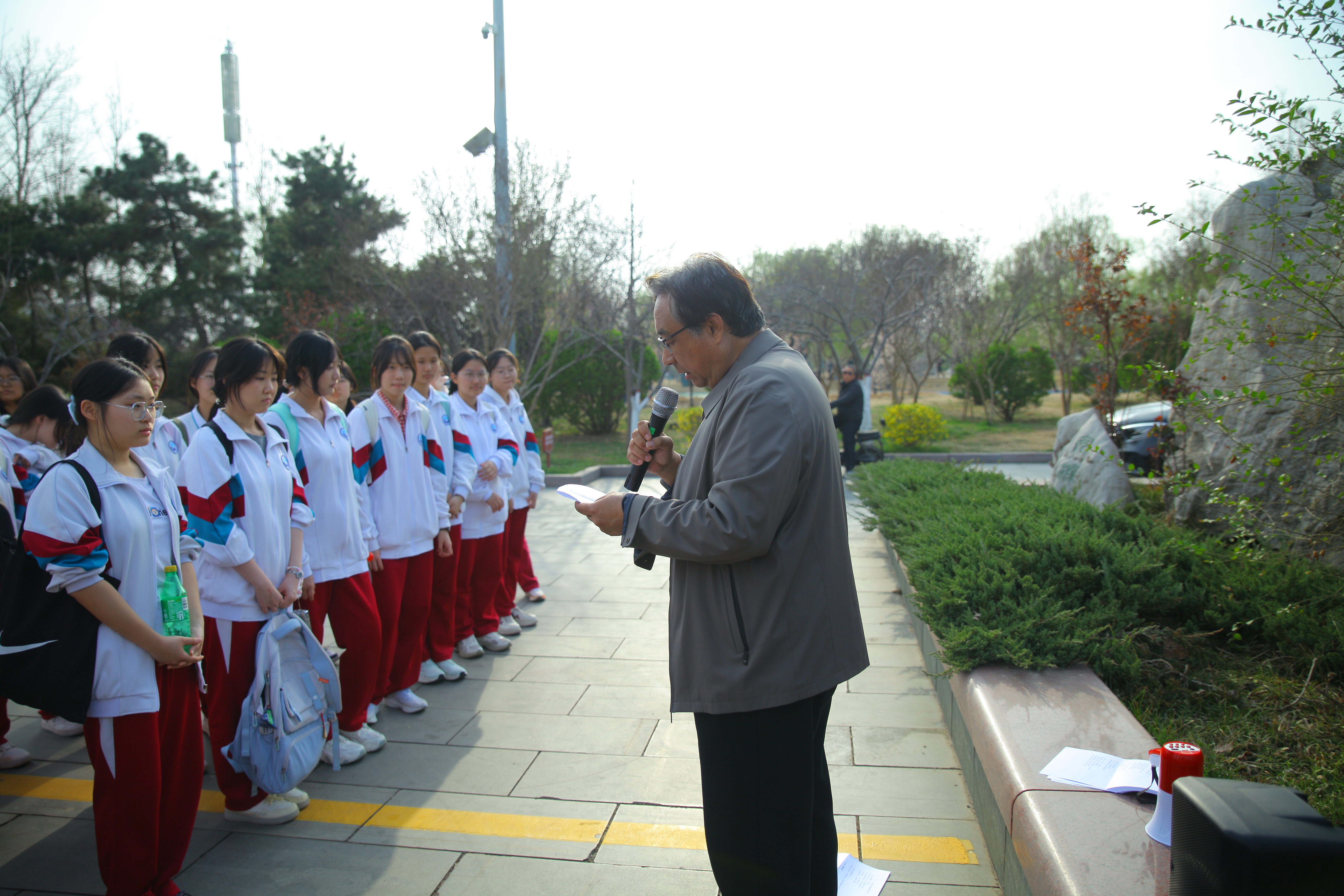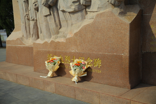 随后,全体师生来到泺口九烈士纪念碑前。在庄严肃穆的氛围中,学生代表向烈士敬献鲜花,全体师生默哀致敬,深切缅怀在革命年代英勇献身的九位烈士。高二6班孟庭聿同学表示:“站在纪念碑前,我仿佛看到了先烈们英勇斗争的场景。作为新时代青年,我们应珍惜幸福生活,肩负起时代赋予的神圣责任。”