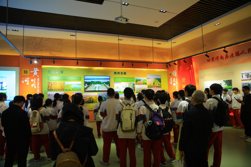研学队伍抵达首站——济南黄河文化展览馆。在专业解说员聂老师的细致讲解下,同学们通过一幅幅历史图片、一件件珍贵文物,系统了解了黄河的自然变迁、治黄历程及沿岸人文风情。从大禹治水的古老传说到历代治河方略的演变,展览馆内丰富的展陈内容,让同学们对“母亲河”有了更加立体深刻的认识。