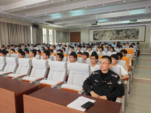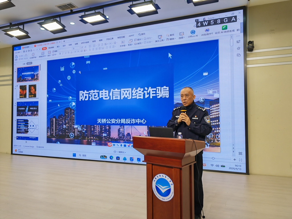 讲座伊始,陈国华教导员结合自身丰富的反诈工作经验,用大量生动详实、贴近学生生活的真实案例,深入浅出地剖析了当前针对青少年群体的常见电信诈骗手法。从“刷单返利”“冒充熟人借款”到“虚假游戏交易”“网络交友诱导投资”等,陈教导员以案说法,将复杂的骗术拆解得通俗易懂,让在场师生深刻认识到电信诈骗的隐蔽性和危害性。他特别提醒同学们,要牢记全国反诈专线96110,主动下载并学会使用“国家反诈中心”APP,开启来电预警功能,切实做到“不轻信、不透露、不转账”,遇到可疑情况第一时间报警或求助。