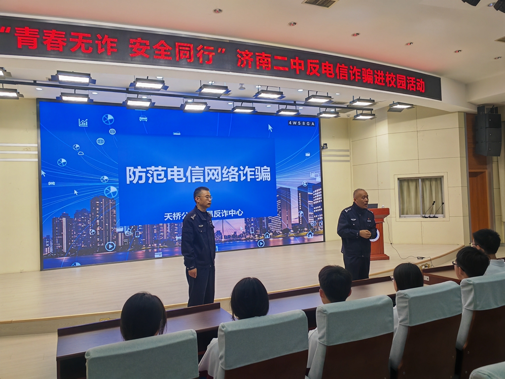 此次“反电信诈骗进校园”活动内容丰富、形式多样,既有专业的理论讲解,又有生动的案例分析和深入的互动交流,有效提升了济南二中师生的识诈、防诈、反诈能力,为构建平安和谐校园奠定了坚实基础。(来源/安全保卫科 初审/供稿 王朝晖 复审/终审 王莎莎 编辑/核发 袁伟)