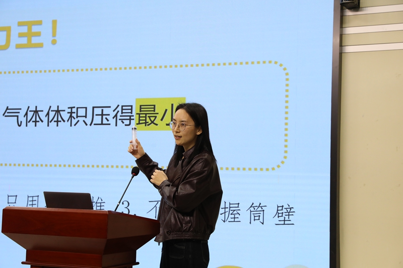年会实践展示环节由教导处主任刘军主持。“臻美课堂”教学模式展示环节,集中呈现学校教学改革中的多元探索成果。物理组李彦清老师的新授课以“注射器中的大力密码:玻义耳定律的探究与应用”为题,通过“大力王”互动游戏、分组实验与数据可视化分析,引导学生自主探究气体压强与体积的定量关系,尽显科学探究的趣味与创新。